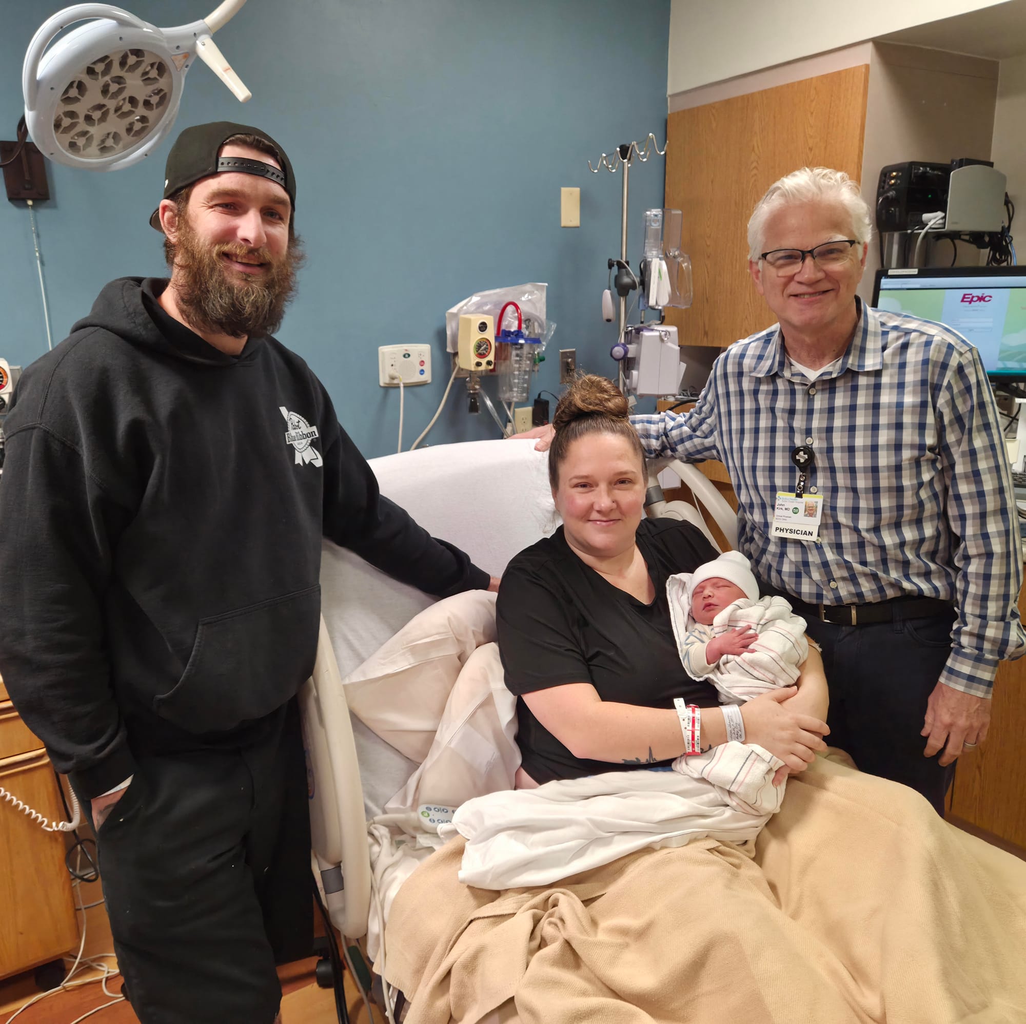 Cooper was the first baby delivered in the New Year by Sutter Coast OB/GYN Dr. John Kirk on Friday, January 2, 2026, at 9:43 p.m. Shawna Wilson delivered an eight-pound, five-ounce, 21½-inch strapping baby boy, with proud father David Hill looking on.
